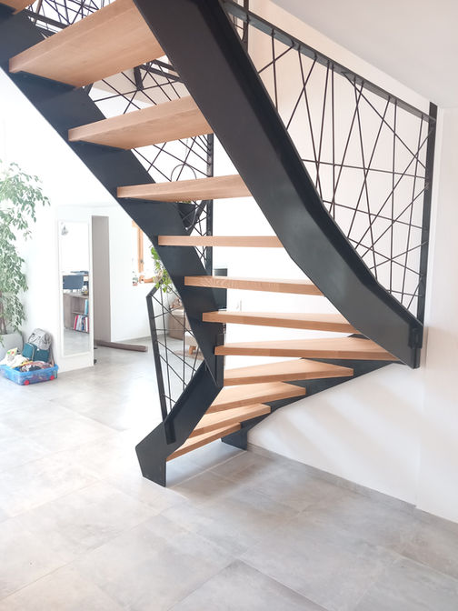 Oamma rampe d'escalier C1 est caractérisé par ses filins disposés aléatoirement lui confère un coté organique.