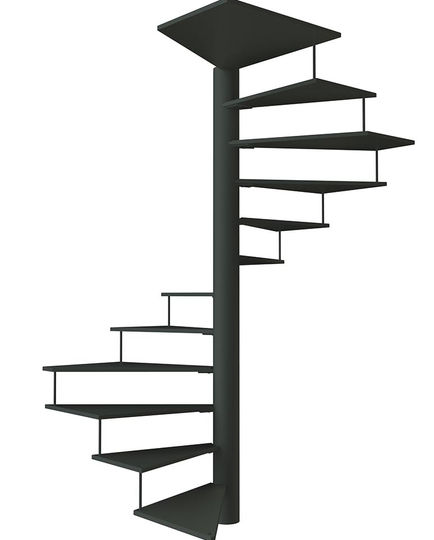 L’escalier spirale est un escalier hélicoïdal avec un fût central tubulaire . Les supports de marche sont en tôle pliés liés au fût, lui permettant un esprit aérien et lumineux.